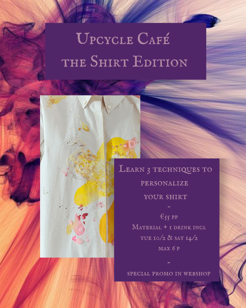 Heb je een saai wit hemd of een oud overhemd dat wel wat actie kan gebruiken? In het Upcycle Café ben jij de boss. Geen fast fashion voor ons, maar unieke kleren die precies laten zien wie jij bent!